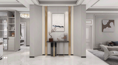 如同巴黎被稱為世界藝術文化之都一樣,具有著浪漫與藝術基因的法國人也有著令人艷羨的精致品位——優(yōu)雅、時尚、高端,生活被他們演繹得像詩一樣優(yōu)美。在這個富有浪漫色彩的空間里,全屋以極具質感的竹木雙色線條和條形板豐富墻面層次,將具有法式感的頂墻融入每一個空間,以簡約的線條塑造空間靈魂感,在呈現浪漫主義的同時還能帶給人時尚都市的體驗享受。推門進屋,是一個令人驚艷的玄關背景墻。兩側的條形板做了圓弧角度處理,中間平板拼接并以黃銅金屬板點綴,在發(fā)光燈帶的內側打亮下,顯得高級且柔和。以玄關過道背景墻為界,將客餐廳進行隱形分隔。以隱形門保持墻面完整,電視機背景墻在基礎竹木墻面疊加純色小背景墻,去繁就簡,營造獨有格調的現代法式美學意境和現代時尚的生活。真正精致的生活,從來不允許有一絲的瑕疵。從地毯、沙發(fā)到水晶金屬吊頂,以及各類精致小擺件,至下而上,營造出空間的時尚和溫馨感。法國人的浪漫與閑適當然離不開一杯酒啦,餐廳做了嵌入式酒柜,玻璃門、開放柜,集收納與展示、大氣與美觀于一身。餐桌與島臺相連,頓生高級質感與迷人的微醺氛圍。主次臥延續(xù)法式輕奢華的風格。經典的雙色線條細膩流暢,構成墻面溫柔的內飾。主臥簡潔干凈,次臥活潑歡快,濃郁的法式腔調讓整個空間更有藝術感。more+
