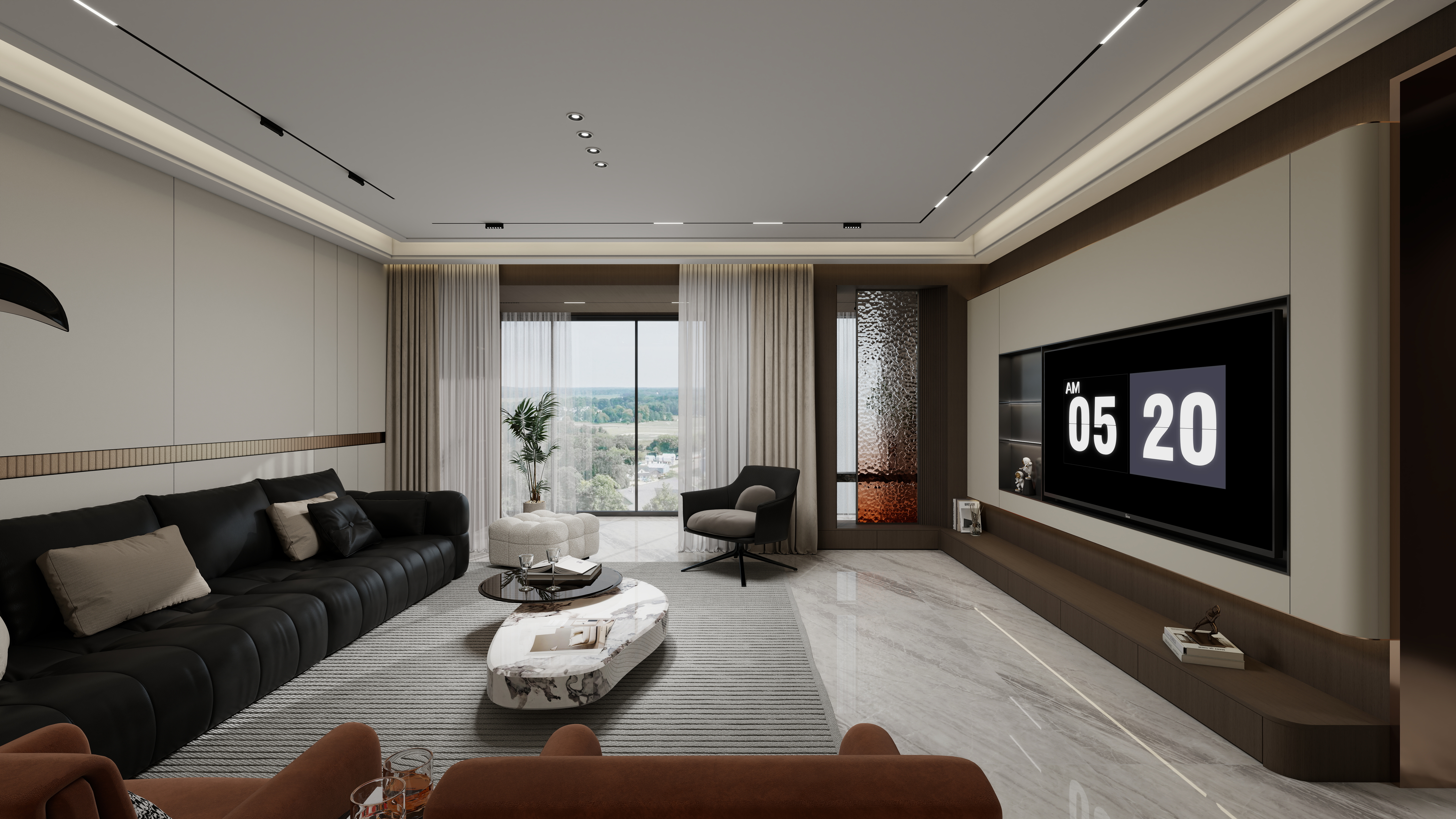 步入這個245㎡的意式大平層,半透黑胡桃與白、灰色調(diào)共同勾勒出寧靜雅致的氛圍。空間核心,是整體優(yōu)雅的頂墻門柜一體化配色氛圍,在這個開放式大空間內(nèi)渾然一體,凸顯大宅精致氣度。設計亮點01 流動的客廳圓弧轉(zhuǎn)角電視背景墻與滿墻電視柜的無縫銜接,消除直角帶來的生硬感,讓視線與動線自然流轉(zhuǎn)。書房融入客廳,開放式布局打破空間壁壘限制。02 社交型餐廚開放式餐廚設計,島臺成為家庭互動中心。大理石與木紋的碰撞,精致與溫暖并存。03 差異化臥室每個臥室都有獨特的墻柜設計與床頭拼色背景,在統(tǒng)一風格中保留個性表達。04 隱形收納系統(tǒng)從書房半透柜到陽臺整體柜,收納被藝術化地隱藏,保持空間表皮的絕對純凈。05 極致色彩統(tǒng)一半透黑胡桃搭配白色、灰色調(diào),通過頂墻門柜同色配套,達到視覺效果的完美和諧。在這個快節(jié)奏的時代,家應當是讓人慢下來的地方。這個245㎡的極簡意式大平層,用克制的設計語言,構建出一個既能容納生活瑣碎,又能撫慰心靈的理想居所。more+