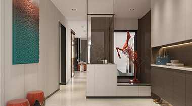 入戶玄關(guān),是日常出入最重要的地方。推門進(jìn)來,首先映入眼簾的墻面,可以說是家的顏值擔(dān)當(dāng)。玄關(guān)的用作從審美的角度看,玄關(guān)的設(shè)計(jì),能對居室起到一定的美化和裝飾作用,表現(xiàn)了主人的文化修養(yǎng)和藝術(shù)品位。海創(chuàng)輕奢玄關(guān)設(shè)計(jì),香檳色金屬線條利落有致,錯(cuò)層燈帶營造既滿足視覺感受,又具有一定的照明需求。空間質(zhì)感與藝術(shù)感不言而喻。從風(fēng)水角度看,玄關(guān)能夠讓住家藏風(fēng)聚氣,化解“開門見廳”這一布局缺陷,也有很好的擋煞和化煞的作用,并防止旺氣外泄。海創(chuàng)新中玄關(guān)隔而不斷,開門見綠,營造了整體大氣卻不失精致感的雅致韻味。柜體隔斷也是一種方式。它既能提升家的顏值,又為家打造了一個(gè)功能區(qū),還可以解決鞋柜的擺放問題,增加收納空間。玄關(guān)的類型入戶玄關(guān)入戶玄關(guān)指的是剛進(jìn)門的那段過渡空間。家里裝修設(shè)計(jì)好不好,玄關(guān)作為“第一眼之美”就起到了畫龍點(diǎn)睛的作用。海創(chuàng)現(xiàn)代入戶玄關(guān)背景墻,愛馬仕橙搭配巖紋,質(zhì)感細(xì)膩、活力滿滿。海創(chuàng)入戶玄關(guān)背景墻采用開門見畫的點(diǎn)綴方式,大方得體。高品質(zhì)板材搭配利落線條,造型別致且錯(cuò)落有序,彰顯出獨(dú)特的魅力過道玄關(guān)過道玄關(guān),在很多人眼中,有很明顯的缺陷,比如路徑長,可能造成空間浪費(fèi),在做玄關(guān)時(shí)要花點(diǎn)心思排布體塊。玄關(guān)作為家中第一道風(fēng)景線,給人的第一印象也代表了主人的審美和品味。一個(gè)好用的玄關(guān)能夠提高人們的家居幸福感,同樣也需要我們用心設(shè)計(jì)哦~more+