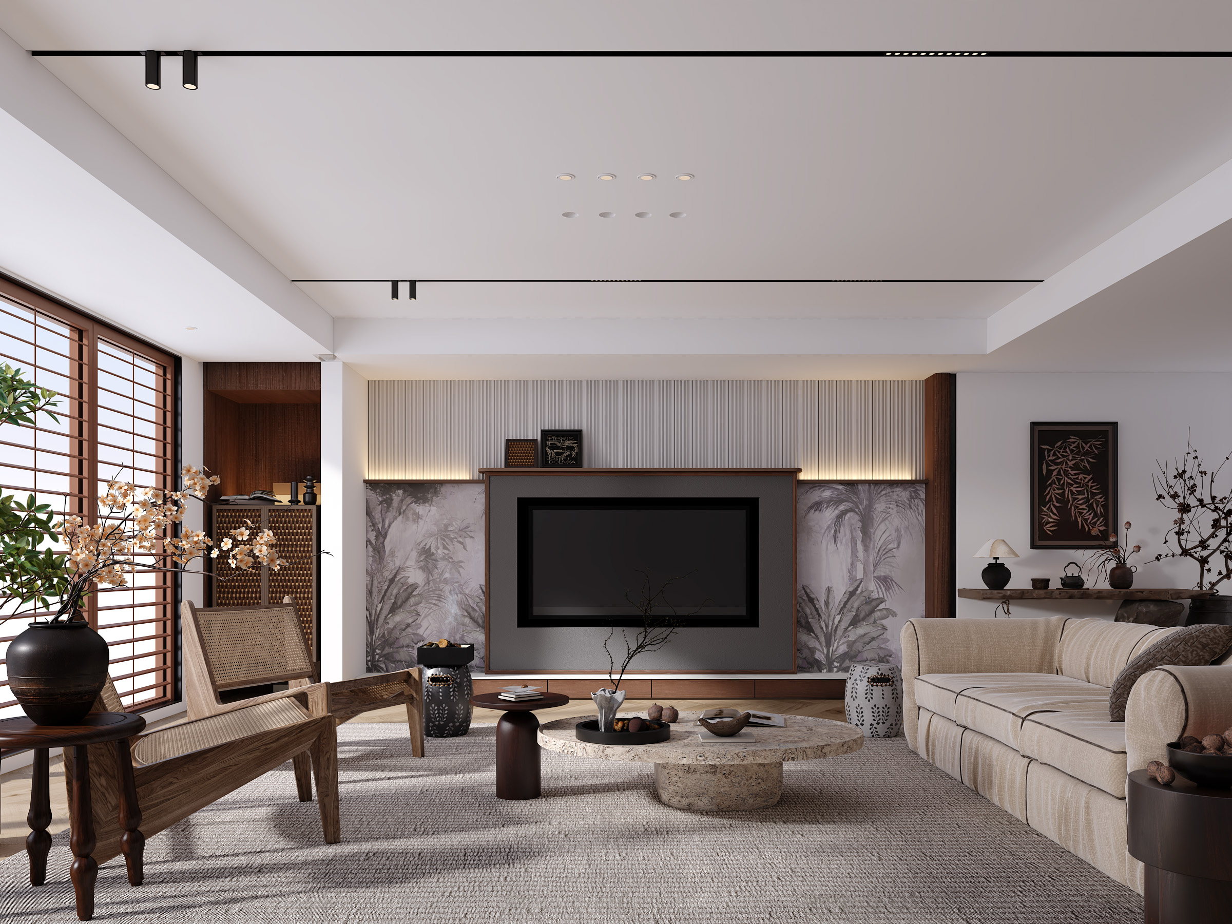 新中式9A木電視背景墻,別墅與平層的設(shè)計(jì)哲學(xué)…