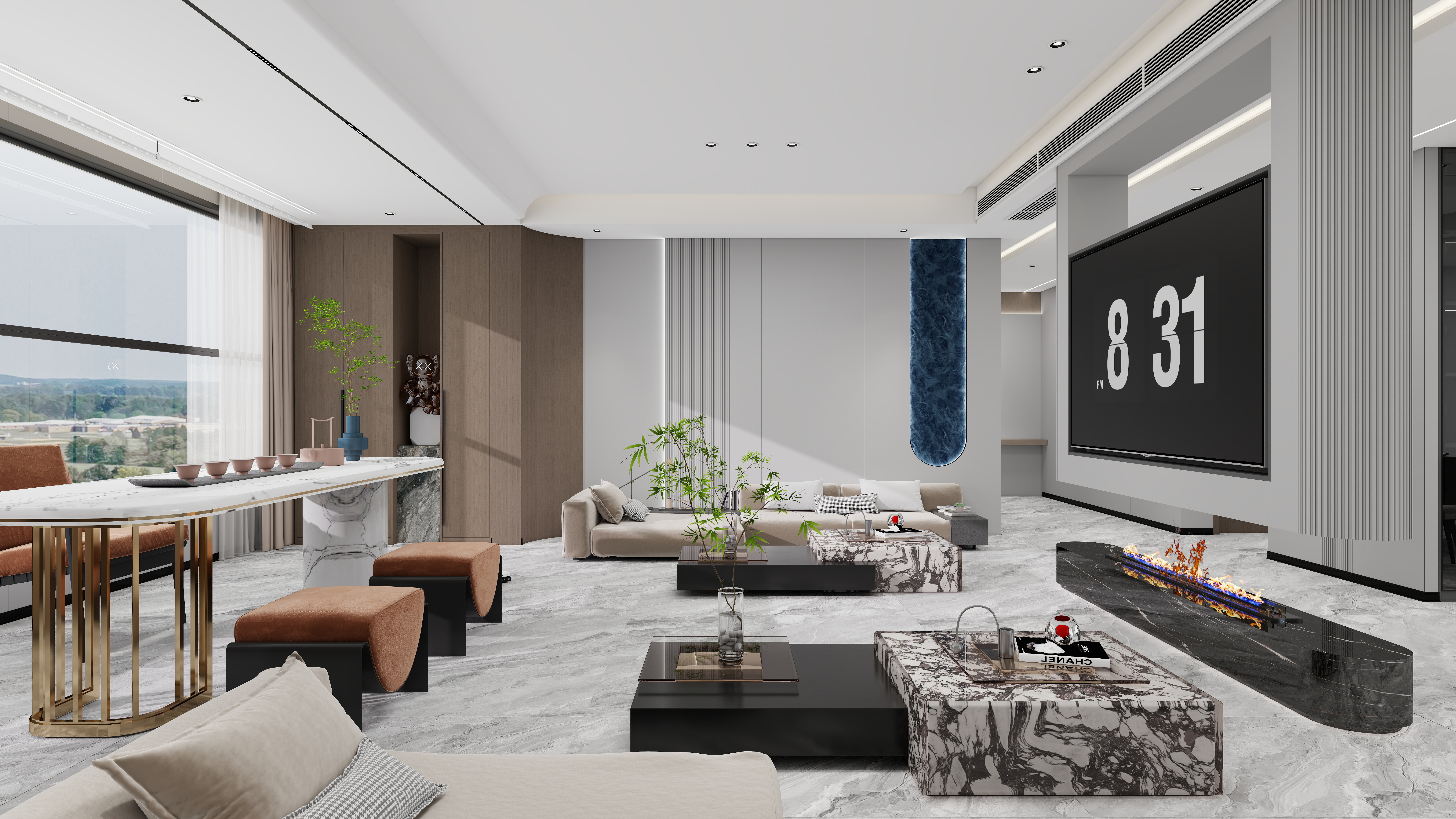 當(dāng)混搭美學(xué)遇上雙層別墅,生活便不再是單一的場景重復(fù)。海創(chuàng)整裝以專業(yè)防潮工藝與整體統(tǒng)一設(shè)計(jì),在此勾勒出明亮通透、功能交織的理想居所。地下與地上,風(fēng)格交融,每一處皆成風(fēng)景。地下一層 · 靜謐與活力共生入戶即景,藍(lán)金沙3D打印背景墻聚焦視線,與雙邊定制柜共同圍合出寬敞大氣的玄關(guān)。大堂采用挑空設(shè)計(jì),白棕配色勾勒意式優(yōu)雅,天井下設(shè)景觀與長椅,引光入室,閑坐亦成詩。向內(nèi)延伸,是器械林立的健身區(qū),以及一處星空頂影音室——9A木健康墻板靜音降噪,在此沉浸視聽,奢享私密時(shí)光。一層 · 交融中西的休閑場域客廳延續(xù)輕奢意式格調(diào),藍(lán)金沙與深胡桃木背景墻,與玄關(guān)遙相呼應(yīng)。茶室則大膽運(yùn)用中國紅與白色碰撞,定制柜營造多層光影,除大茶桌外,更設(shè)休閑一角,便于促膝深談。新中式茶韻、意式慵懶、麻將社交、廚房煙火……多元場景自由切換,情感與溫度在此悄然流動。洞見空間哲學(xué),演繹生活故事海創(chuàng)整裝,以統(tǒng)一設(shè)計(jì)語言貫通雙層空間,防潮工藝守護(hù)地下室明亮干燥。在這里,風(fēng)格無界,功能無限,一切只為回歸居住的本真愜意。more +12月