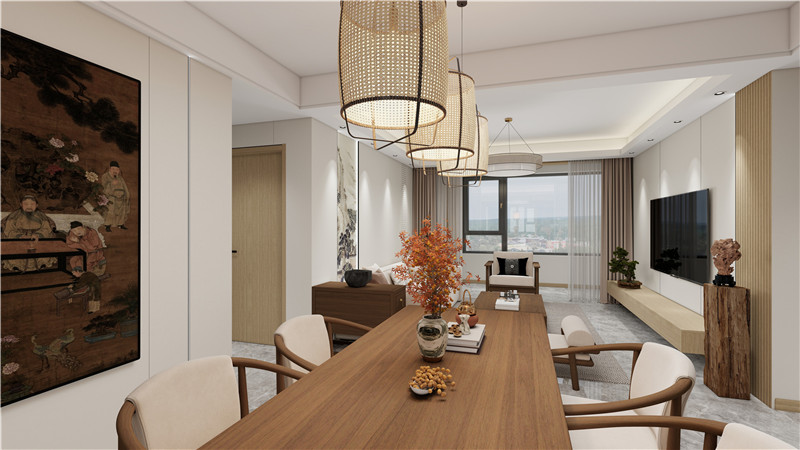 寒露家裝記|100㎡新中式,胡桃木+白,演繹秋日靜好…