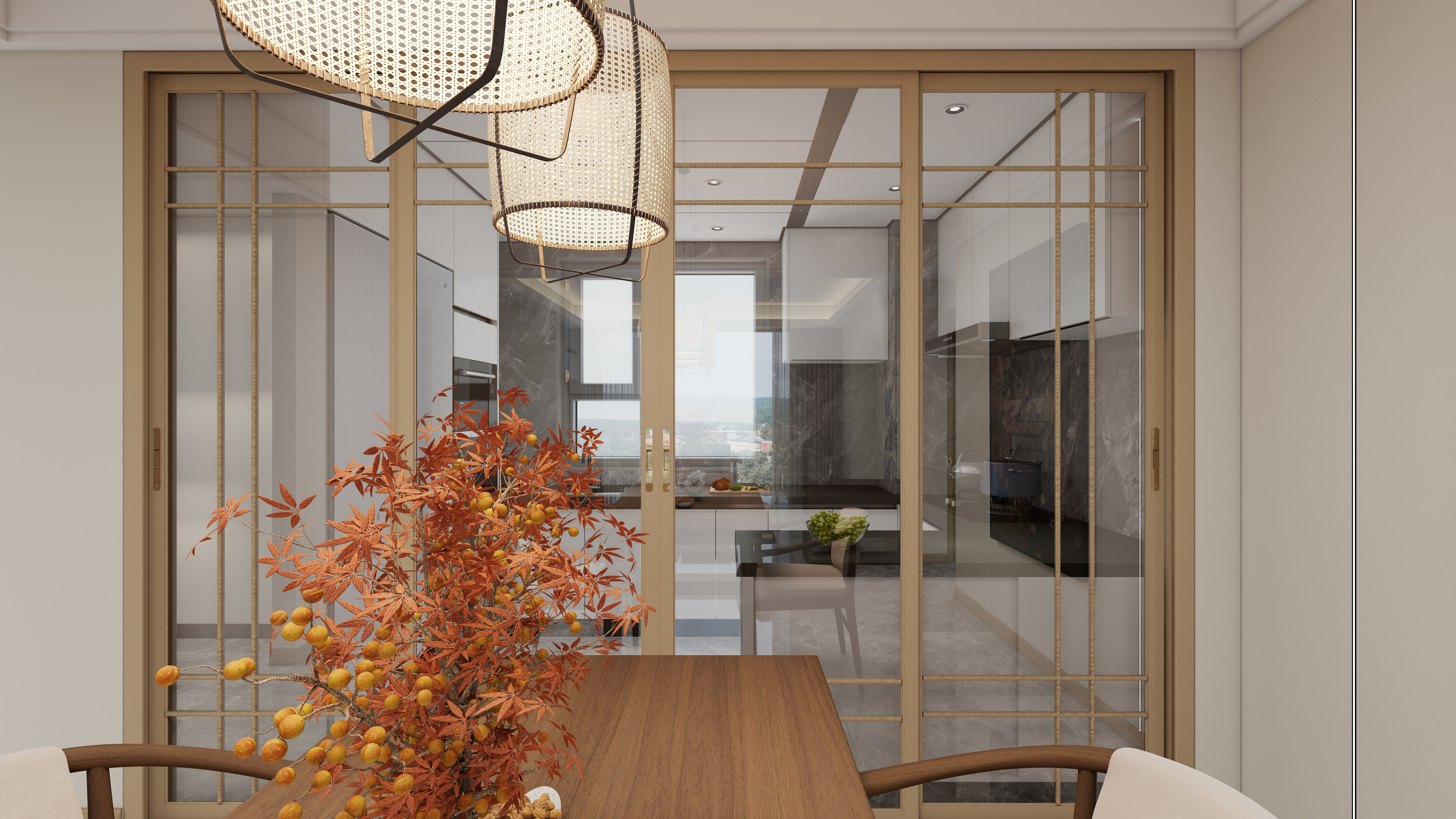 寒露至,秋意濃,楓葉漸紅,家亦需一方溫暖相迎。100㎡新中式兩廳三居,以胡桃木色與白為主調(diào),勾勒秋日里的沉穩(wěn)與潔凈,演繹恰到好處的居住美學(xué)。玄關(guān):秋意迎賓,歸家即靜胡桃木色玄關(guān)柜搭配白色墻面,宛如秋葉落于素宣。入門一刻,喧囂隔絕,只留靜謐與秩序。客餐廚一體:開闊通透,共享秋光開放式布局打通空間界限,胡桃木櫥柜、餐桌與白色巖板島臺相映。寒露時(shí)節(jié),家人圍坐,美食暖胃,笑語盈堂。陽臺:收納秋色,閑適一方定制陽臺柜巧妙收納,留白空間擺放藤椅茶幾。午后倚窗,沐暖陽、品熱茶,盡享秋日慵懶。主臥:木白相融,安眠秋夜深胡桃木與白色鉤花造型打造別樣中式背景墻,寧靜氛圍滿溢。寒露夜涼,溫暖包裹,安心入夢。次臥 客臥:簡約有度,暖心以待延續(xù)木+白基調(diào),布局簡約實(shí)用。無論是兒童房還是親友暫住,皆傳遞細(xì)致關(guān)懷。秋深家暖,寒露時(shí)節(jié)與海創(chuàng)頂墻門柜一同雕琢理想居所,讓生活如秋光般溫潤而從容。more+