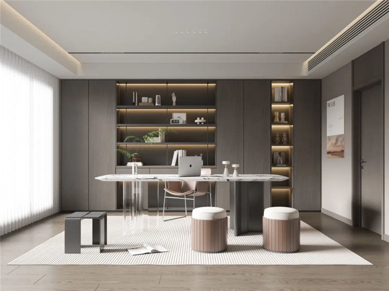 海創(chuàng)頂墻門柜,以系統(tǒng)化定制能力,將意式美學(xué)與功能哲學(xué)融入每寸空間,成就獨(dú)一無二的高端居住范本。挑空格局,光影交響上下雙層,挑空設(shè)計打開空間氣場。整體以經(jīng)典黑白為基調(diào),底層客餐廳通透一體,客廳背景墻貫通至二層,奢石紋理躍然眼前,與溫潤木飾面碰撞,交織出自然與奢華的共生韻律。客廳:奢石與火焰的對話電視背景墻以流暢圓弧側(cè)邊結(jié)合懸浮設(shè)計,勾勒出輕盈之態(tài)。底部嵌入現(xiàn)代壁爐,火焰躍動,為極簡的Ins風(fēng)空間注入溫暖靈魂。抬頭即見二層觀景臺,日光傾瀉,明亮感貫穿上下。餐廳:鏡面魔法通頂?shù)纳罨叶ㄖ乒癯练€(wěn)延展,頂部巧妙運(yùn)用鏡面設(shè)計,搭配線性光影燈帶,視覺空間瞬間拉升,營造出深邃而高級的用餐儀式感。書房:懸浮之境步入二層,書房以白、金、黑勾勒奢華氛圍。半開放式書柜內(nèi)置光影層板燈,珍藏的手辦宛如藝術(shù)展品。透明玻璃書桌與護(hù)欄相呼應(yīng),工作間隙俯瞰樓下全景,心境隨之轉(zhuǎn)換開闊。精工交付:一站式系統(tǒng)化兌現(xiàn)從甄選環(huán)保基材與意大利質(zhì)感飾面,到一體化設(shè)計、毫米級精準(zhǔn)定制與專業(yè)團(tuán)隊(duì)高效安裝,海創(chuàng)提供真正的一站式系統(tǒng)服務(wù)。每一個環(huán)節(jié)嚴(yán)密銜接,確保全屋色彩、質(zhì)感與細(xì)節(jié)的高度統(tǒng)一,所見即所得,將效果圖中的高級感完整落地于家。more +01月