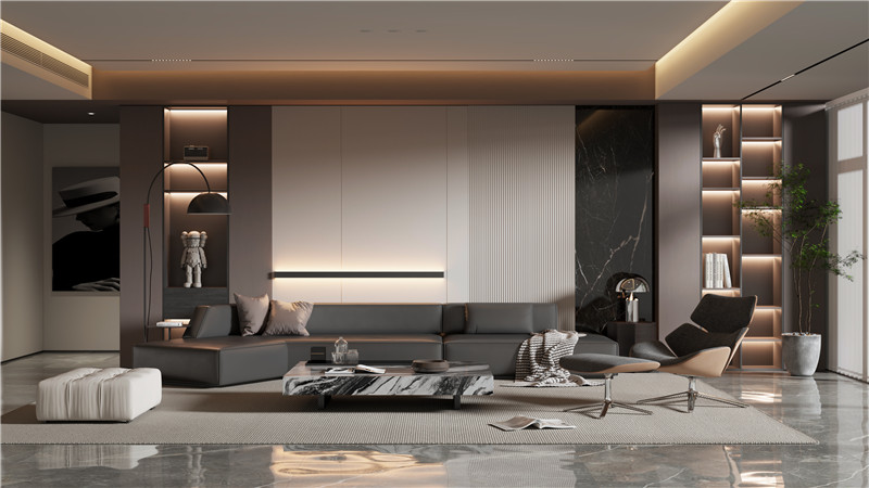 海創(chuàng)頂墻門柜,以系統(tǒng)化定制能力,將意式美學(xué)與功能哲學(xué)融入每寸空間,成就獨(dú)一無二的高端居住范本。挑空格局,光影交響上下雙層,挑空設(shè)計(jì)打開空間氣場。整體以經(jīng)典黑白為基調(diào),底層客餐廳通透一體,客廳背景墻貫通至二層,奢石紋理躍然眼前,與溫潤木飾面碰撞,交織出自然與奢華的共生韻律。客廳:奢石與火焰的對(duì)話電視背景墻以流暢圓弧側(cè)邊結(jié)合懸浮設(shè)計(jì),勾勒出輕盈之態(tài)。底部嵌入現(xiàn)代壁爐,火焰躍動(dòng),為極簡的Ins風(fēng)空間注入溫暖靈魂。抬頭即見二層觀景臺(tái),日光傾瀉,明亮感貫穿上下。餐廳:鏡面魔法通頂?shù)纳罨叶ㄖ乒癯练€(wěn)延展,頂部巧妙運(yùn)用鏡面設(shè)計(jì),搭配線性光影燈帶,視覺空間瞬間拉升,營造出深邃而高級(jí)的用餐儀式感。書房:懸浮之境步入二層,書房以白、金、黑勾勒奢華氛圍。半開放式書柜內(nèi)置光影層板燈,珍藏的手辦宛如藝術(shù)展品。透明玻璃書桌與護(hù)欄相呼應(yīng),工作間隙俯瞰樓下全景,心境隨之轉(zhuǎn)換開闊。精工交付:一站式系統(tǒng)化兌現(xiàn)從甄選環(huán)保基材與意大利質(zhì)感飾面,到一體化設(shè)計(jì)、毫米級(jí)精準(zhǔn)定制與專業(yè)團(tuán)隊(duì)高效安裝,海創(chuàng)提供真正的一站式系統(tǒng)服務(wù)。每一個(gè)環(huán)節(jié)嚴(yán)密銜接,確保全屋色彩、質(zhì)感與細(xì)節(jié)的高度統(tǒng)一,所見即所得,將效果圖中的高級(jí)感完整落地于家。more +01月