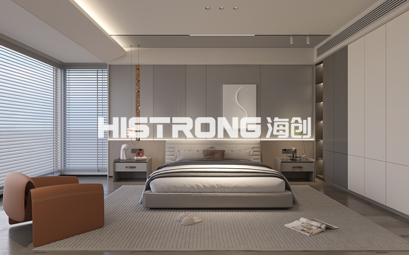 當原木的溫潤遇上清簡的設計,家便成了呼吸的詩。本案以海創(chuàng)頂墻門柜整裝定制,勾勒出一座自然寧靜的雙層居所,讓每一處細節(jié)都流露著和諧與定制之美。挑高大廳,氣勢貫通一層客廳采用挑高設計,9A木健康墻板電視背景墻縱向延伸至二層,巖紋木紋拼接,簡潔的線條與材質(zhì)的碰撞,賦予空間開闊大氣的視覺張力。過道靜謐,統(tǒng)一之美整體走廊與過道以白色與原木為主調(diào),鋁木靜音門與墻板同色定制,消除視覺割裂。巖紋穿插于木紋之間,悄然豐富著空間的層次與質(zhì)感。臥室舒緩,韻律交織多個臥室背景墻通過原木、巖紋與格柵的跳躍組合,實現(xiàn)統(tǒng)一中的變化。電視墻以對稱巖紋點綴,平衡秩序與靈動,營造出安寧且富有節(jié)奏的休憩氛圍。全屋依托海創(chuàng)9A木健康墻板、生態(tài)定制柜與靜音門系統(tǒng),將環(huán)保、靜音與美學融為一體,成就了一個真正量身定制、自然呼吸的家。more +12月
