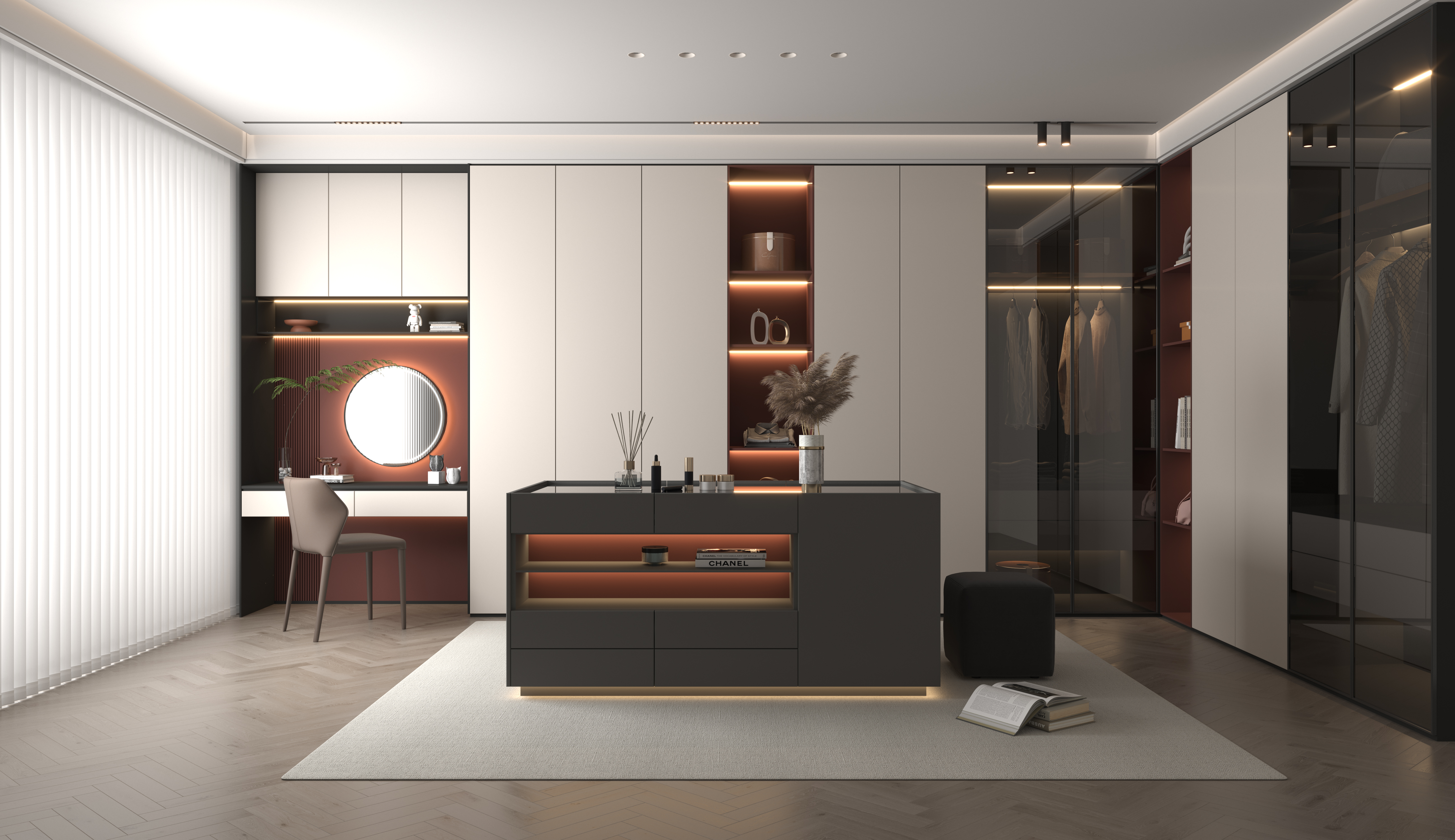 當新中式的韻味,遇見現(xiàn)代的簡約一個家,兩種美學交融海創(chuàng)頂墻門柜全屋定制以一站式整體解決方案于雙層別墅中,演繹從容有度的品質生活一層 · 東方禮序與靜雅棲居門廳:半透玻璃隔斷,入戶即見景,茶客廳若隱若現(xiàn),儀式感十足。客茶廳:奢石背景墻微錯層設計,搭配整墻定制收納柜。獨特島臺茶桌立于沙發(fā)之后,待客、品茗,功能隨心切換。老人房:遠山意境畫作與對稱格柵相融,靜謐祥和,蘊含傳統(tǒng)底蘊。主臥:大面積留白,深棕點綴,9A級健康木墻板構建靜音舒眠系統(tǒng)。活動室:延續(xù)同色系設計,化作一方休閑棋牌天地,家庭歡聚于此。二層 · 現(xiàn)代筆觸與舒緩格調(diào)雙主臥:一抹奶油底色,溫柔彌漫。一室以弧形背景墻嵌入線性光,氛圍感拉滿;另一室巧妙實現(xiàn)墻柜一體,簡約而實用。客廳:極簡清新風,弧形天花勾勒柔美線條,沙發(fā)背景墻通過多樣拼接,營造豐富視覺層次。辦公室:一門到頂?shù)陌腴_放書柜,收納與展示兼?zhèn)洹*毩⑸嘲l(fā)區(qū)滿足會客需求,實現(xiàn)高效辦公與輕松社交的平衡。海創(chuàng)全案優(yōu)勢 · 一站式美好落地從頂、墻、門到全屋柜類統(tǒng)一設計:風格貫穿,色彩協(xié)調(diào),確保整體美感。專業(yè)定制:精準利用每寸空間,功能與美觀并存。省心交付:全程一站式服務,無縫銜接,告別繁瑣協(xié)調(diào)。more +01月