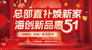 總部直補(bǔ)煥新家 | 海創(chuàng)新品惠五一,29800頂墻門柜全配齊!