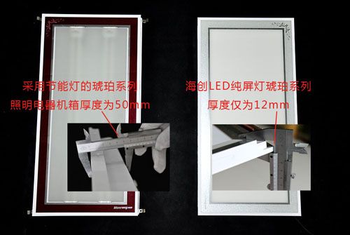 1.海創(chuàng)琥珀系列節(jié)能燈與琥珀系列LED純屏燈產(chǎn)品厚度對比: