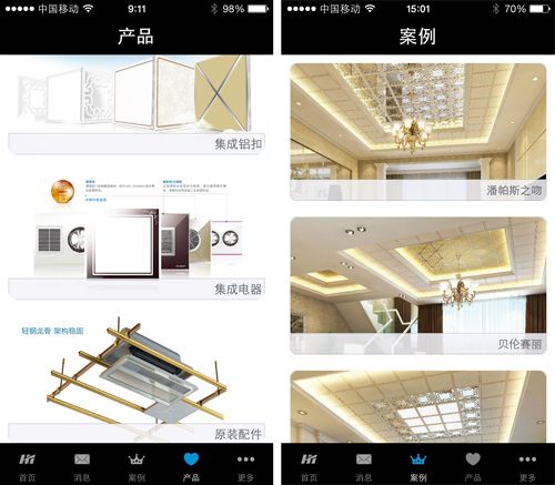 在海創(chuàng)集成吊頂APP中,功能豐富的欄目能夠全方位地讓消費者了解海創(chuàng)企業(yè)發(fā)展、企業(yè)文化和品牌特色,并通過產(chǎn)品的展示從而深入了解海創(chuàng)集成吊頂?shù)奶攸c。
