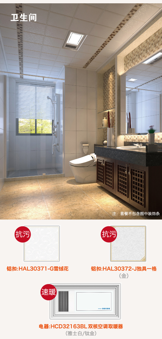 注:廚房和衛(wèi)生間單間面積按4.05平米計算,超出部分按店內折扣價計算,特價板與廚衛(wèi)套餐不同時享受。