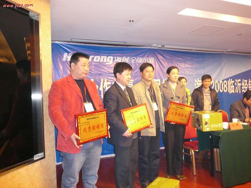 海創(chuàng)臨沂地區(qū)總代理曹經(jīng)理、銷售經(jīng)理王經(jīng)理做了工作報(bào)告。隨后,我公司為該地區(qū)的優(yōu)秀經(jīng)銷商頒發(fā)了獎(jiǎng)狀,以資鼓勵(lì)。