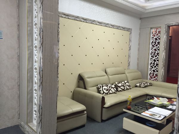 活動期間海創(chuàng)集成墻面UV飾面板兩大產(chǎn)品也在家裝博覽會上全新亮相。集成墻面、UV飾面板屬于新型裝飾墻面材料,產(chǎn)品以綠色環(huán)保建材為源泉而設(shè)計(jì),其市場延展性較高,安裝工序簡單,只需木工操作,家裝一般在一周內(nèi)可以完成,極大地降低人工成本。如此優(yōu)質(zhì)的家裝產(chǎn)品吸引了眾多業(yè)主前來咨詢選購,現(xiàn)場人氣火爆。