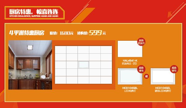 產品性價比一直是消費者最看重的,元旦來臨之際,海創(chuàng)專為廚房量身定做一款特惠套餐,原價1680元的四平米抗油污廚房套餐在活動期間購買只需599元,讓工廠價直面消費者。