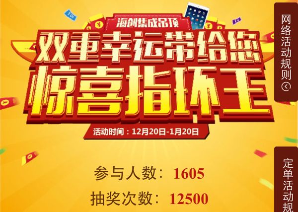短短一個月的時間里,我們一直切身體會著什么叫驚喜!申請“0元體驗”的用戶已經(jīng)超過300名,而驚喜指環(huán)王環(huán)節(jié)總參與人數(shù)超過1600人,總抽獎次數(shù)近13000次。每一項數(shù)據(jù)背后都是消費者對海創(chuàng)品牌的認可,對舉辦此次活動的信任!