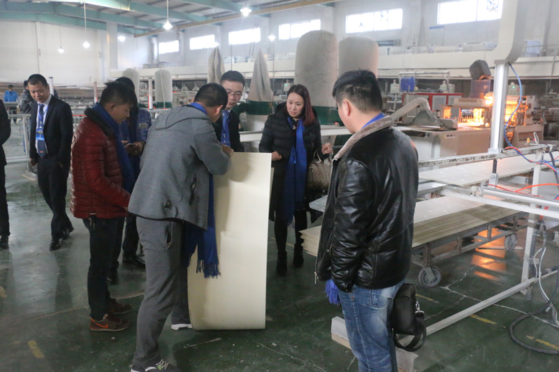 上午九點時分,客戶坐大巴準時到達海創(chuàng)總部工廠,客戶分別對樣板間與工廠進行實地考察。海創(chuàng)豐富而多樣的吊頂與墻面產(chǎn)品讓人驚嘆,流水線生產(chǎn)的精準與快速性也讓首次來海創(chuàng)的客戶體驗到品質(zhì)獨到??疾爝^產(chǎn)品的生產(chǎn)與成品后,客戶便來到海創(chuàng)自行搭建完成的體驗館感受頂墻一體魅力。
