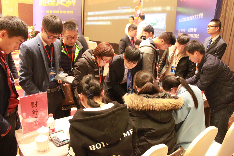 海創(chuàng)限時政策一出,全場轟動。海創(chuàng)銷售部高部長就加盟政策做深度解析,臺下客戶加盟意向強烈。意向加盟環(huán)節(jié),主持人話音剛落,便有眾多客戶涌向簽約臺,現(xiàn)場交訂金與抽紅包不斷。