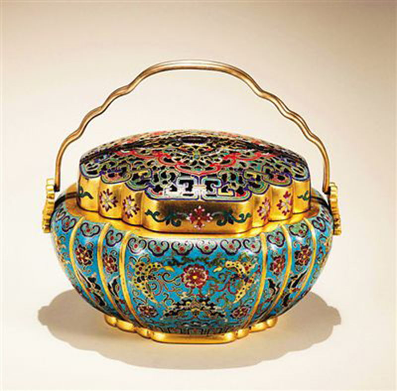 熏爐是一種外帶罩子的炭火盆,分上下兩部分,下部是盆,上部為刻有精美圖案的鏤空護(hù)罩。熏爐一般為富貴人家所有。漢代出現(xiàn)了專門熏香、凈化空氣的青銅博山爐。