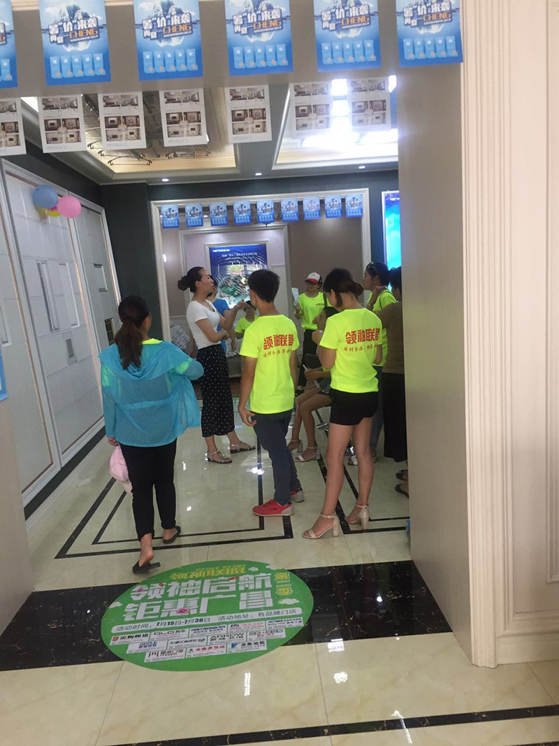 7月30日,由領(lǐng)袖聯(lián)盟主辦的家裝建材團(tuán)購會大型活動在各門店內(nèi)隆重舉行。現(xiàn)場匯集了宏陶陶瓷、我樂櫥柜、海創(chuàng)頂墻、箭牌衛(wèi)浴、歐普照明、皇派門窗、圣象地板、火星人集成灶、海爾電器、美涂士油漆等眾多家裝行業(yè)的一線品牌,活動火爆異常。