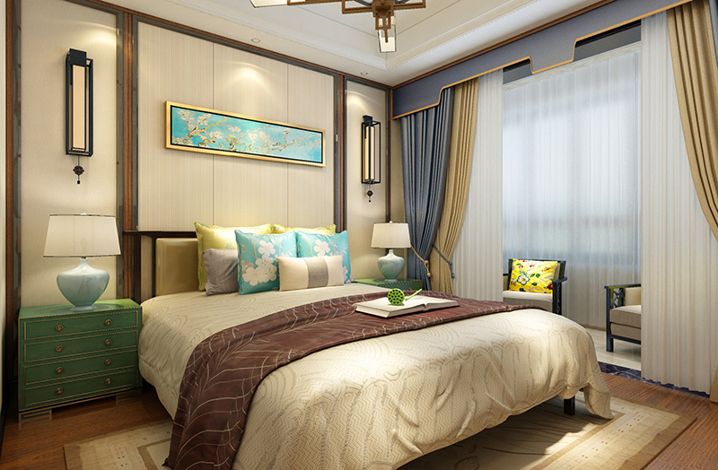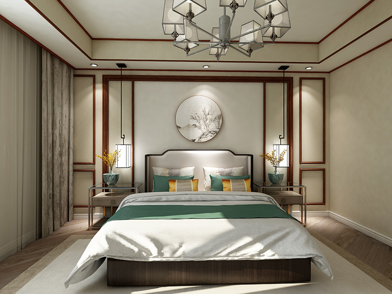 鐵刀木與北美楓木的完美線條拼合,拼接之中,搭建新韻留存的古今風(fēng)味,演繹別樣的新中式風(fēng)格。素雅布帛的淺淺木紋做主飾面,讓自然的氣息融入進(jìn)來(lái),臥室的靈動(dòng)典雅氣質(zhì)被越發(fā)烘托。