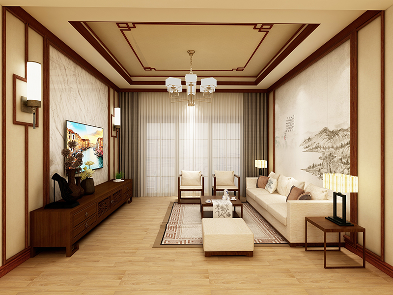 客廳的敞亮大氣需要頂面的提升來(lái)增加縱深感,新檀木線條靈活多變,延伸蜿蜒之中,拓寬頂面與墻面的視線距離,打開(kāi)窗簾,當(dāng)飽滿的月光打在淡意勁爽的3D水墨打印畫(huà)上,同賞之時(shí)便是天倫之樂(lè)。