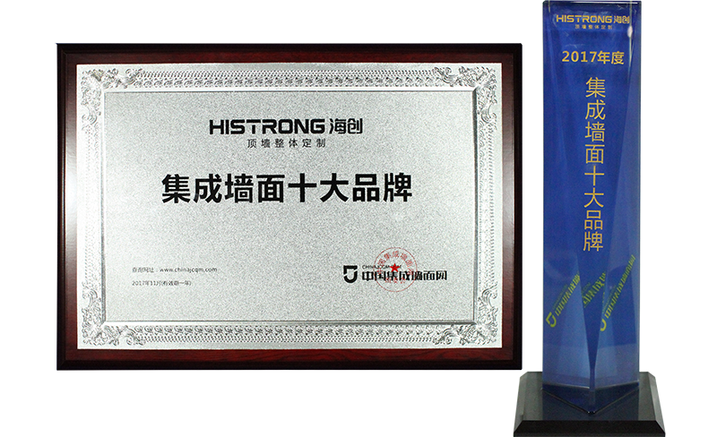 海創(chuàng)斬獲2017年度集成墻面十大品牌、集成頂墻十大品牌雙獎(jiǎng)來源:海創(chuàng)集成吊頂十大品牌 發(fā)布時(shí)間:2017/12/11 9:01:36