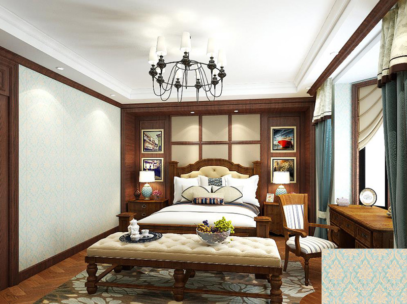 經(jīng)典大馬士革圖案,夾雜海藍底紋帶來的濃郁海風,熱烈而張揚。金黃色對比色的運用,溫暖整個房間,將古典的氣質(zhì)綿延至各個空間。