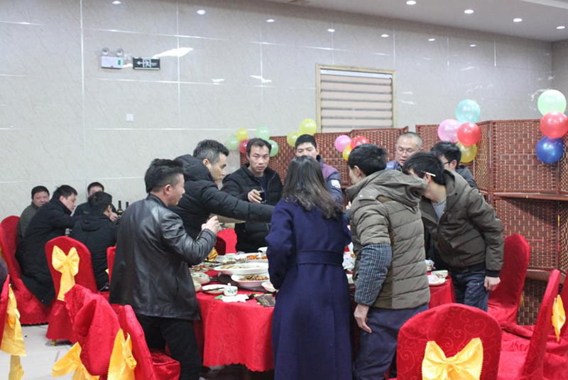 大家各自敬酒,慶賀一年的努力。董事長攜夫人給每桌敬酒,感謝所有人為海創(chuàng)公司的辛苦付出。
