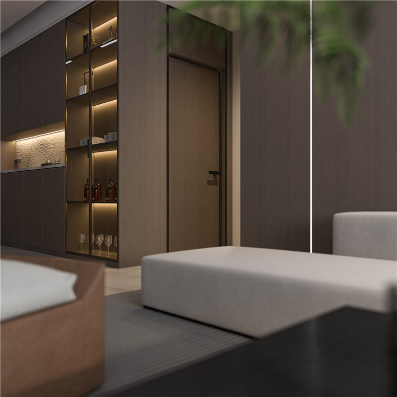 海創(chuàng)極簡門表面創(chuàng)新性地使用了竹木墻板材質(zhì),能與竹木美學(xué)墻板保持同色紋理,讓空間更統(tǒng)一,是家庭裝修的不二選擇。