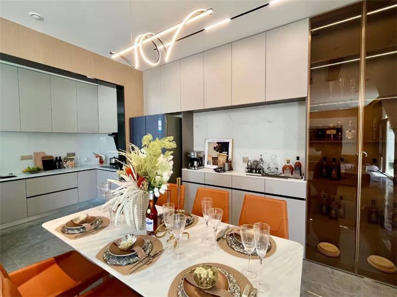 餐廚一體,是理想生活的全新提案。海創(chuàng)整家定制,通過頂、墻、門、柜的同色同紋一體化設計,讓美感與功能渾然天成,為您實現(xiàn)無論現(xiàn)代輕奢、精致意式、雅致新中式或溫暖原木風的全風格駕馭。我們以系統(tǒng)性思維規(guī)劃空間。例如,廚房選用抗油耐污的博格鋁蜂窩大板,與墻面、櫥柜保持和諧的白灰色調(diào),吊柜巧妙點綴,視覺連貫統(tǒng)一。此色調(diào)與設計語言可一直延伸至餐廳區(qū)域,形成大氣高端的整體感。布局上更具巧思,可將餐廳環(huán)繞于廚房之中,打造兼具中島與餐桌功能的核心區(qū),增強家人互動,讓空間利用率與收納效能最大化。從一板一色到整體格局,海創(chuàng)提供真正的省心整家定制。在這里,烹飪與歡聚無縫銜接,讓每一天都向陽而生。more +12月