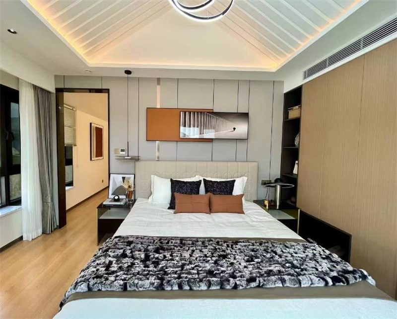 當新中式的韻味,遇見現(xiàn)代的簡約一個家,兩種美學交融海創(chuàng)頂墻門柜全屋定制以一站式整體解決方案于雙層別墅中,演繹從容有度的品質(zhì)生活一層 · 東方禮序與靜雅棲居門廳:半透玻璃隔斷,入戶即見景,茶客廳若隱若現(xiàn),儀式感十足。客茶廳:奢石背景墻微錯層設計,搭配整墻定制收納柜。獨特島臺茶桌立于沙發(fā)之后,待客、品茗,功能隨心切換。老人房:遠山意境畫作與對稱格柵相融,靜謐祥和,蘊含傳統(tǒng)底蘊。主臥:大面積留白,深棕點綴,9A級健康木墻板構(gòu)建靜音舒眠系統(tǒng)。活動室:延續(xù)同色系設計,化作一方休閑棋牌天地,家庭歡聚于此。二層 · 現(xiàn)代筆觸與舒緩格調(diào)雙主臥:一抹奶油底色,溫柔彌漫。一室以弧形背景墻嵌入線性光,氛圍感拉滿;另一室巧妙實現(xiàn)墻柜一體,簡約而實用。客廳:極簡清新風,弧形天花勾勒柔美線條,沙發(fā)背景墻通過多樣拼接,營造豐富視覺層次。辦公室:一門到頂?shù)陌腴_放書柜,收納與展示兼?zhèn)洹*毩⑸嘲l(fā)區(qū)滿足會客需求,實現(xiàn)高效辦公與輕松社交的平衡。海創(chuàng)全案優(yōu)勢 · 一站式美好落地從頂、墻、門到全屋柜類統(tǒng)一設計:風格貫穿,色彩協(xié)調(diào),確保整體美感。專業(yè)定制:精準利用每寸空間,功能與美觀并存。省心交付:全程一站式服務,無縫銜接,告別繁瑣協(xié)調(diào)。more +01月