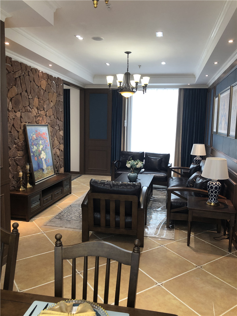 精致穩(wěn)重的美式風,步入其中便能立刻讓人感受到這個家的文化底蘊。背景墻的包覆恰到好處,既彌補了墻面突出的美中不足,又讓沙發(fā)所在的客廳顯得格外吸睛。