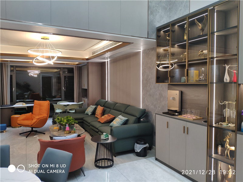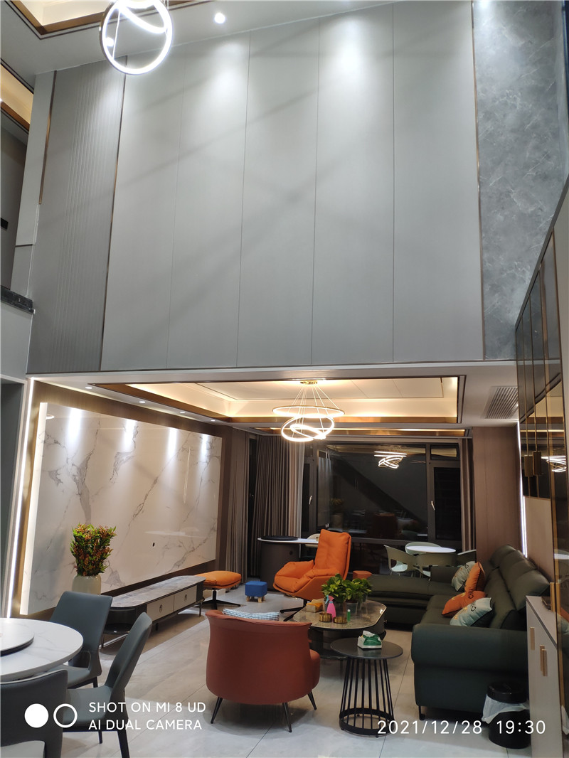 海創(chuàng)頂墻門柜,以系統(tǒng)化定制能力,將意式美學與功能哲學融入每寸空間,成就獨一無二的高端居住范本。挑空格局,光影交響上下雙層,挑空設計打開空間氣場。整體以經(jīng)典黑白為基調(diào),底層客餐廳通透一體,客廳背景墻貫通至二層,奢石紋理躍然眼前,與溫潤木飾面碰撞,交織出自然與奢華的共生韻律。客廳:奢石與火焰的對話電視背景墻以流暢圓弧側(cè)邊結(jié)合懸浮設計,勾勒出輕盈之態(tài)。底部嵌入現(xiàn)代壁爐,火焰躍動,為極簡的Ins風空間注入溫暖靈魂。抬頭即見二層觀景臺,日光傾瀉,明亮感貫穿上下。餐廳:鏡面魔法通頂?shù)纳罨叶ㄖ乒癯练€(wěn)延展,頂部巧妙運用鏡面設計,搭配線性光影燈帶,視覺空間瞬間拉升,營造出深邃而高級的用餐儀式感。書房:懸浮之境步入二層,書房以白、金、黑勾勒奢華氛圍。半開放式書柜內(nèi)置光影層板燈,珍藏的手辦宛如藝術展品。透明玻璃書桌與護欄相呼應,工作間隙俯瞰樓下全景,心境隨之轉(zhuǎn)換開闊。精工交付:一站式系統(tǒng)化兌現(xiàn)從甄選環(huán)保基材與意大利質(zhì)感飾面,到一體化設計、毫米級精準定制與專業(yè)團隊高效安裝,海創(chuàng)提供真正的一站式系統(tǒng)服務。每一個環(huán)節(jié)嚴密銜接,確保全屋色彩、質(zhì)感與細節(jié)的高度統(tǒng)一,所見即所得,將效果圖中的高級感完整落地于家。more +01月