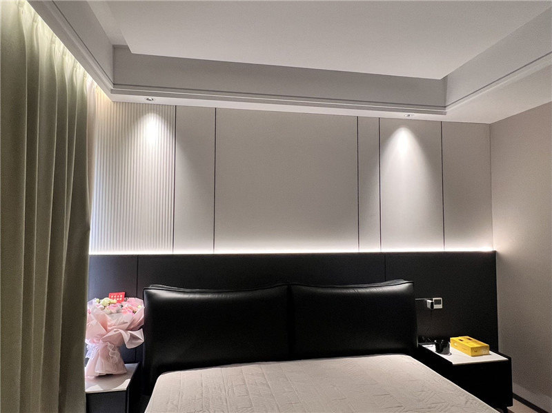 帶地下室的現(xiàn)代風設計,干凈利索到?jīng)]有一絲多余的線條,影音房配合影院主題,燈帶遞進,凸顯氛圍感。