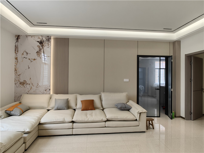這套120㎡的居所,以侘寂美學為底色,通過頂墻門柜極致的黑白對比,勾勒出空間的清晰輪廓與深邃層次。黑,并非純粹的暗色,而是沉穩(wěn)的錨點;白,也非簡單的空曠,成為呼吸與光影的畫卷。客廳:定制的秩序感客廳的雙背景墻均采用頂天立地的定制柜體,以內(nèi)嵌形式消弭冗余。黑白柜面交織拼接,如同精心裝幀的書卷,在提供海量收納的同時,刻畫出立體而干凈的空間輪廓,奠定沉穩(wěn)大氣的基調(diào)。餐廚區(qū):圍合的溫度場采用開放式圍合布局,空間通透流暢。視線可毫無阻隔地延伸至廚房,讓家人備餐時的身影與笑語成為最動人的風景。一組深棕色的木質吊柜恰到好處地點綴其間,其溫潤的質感瞬間柔化了黑白的冷峻,為空間注入一絲暖意與高級感。玄關:延伸的巧思雖尺度精巧,卻通過延展式布局與半開放設計,巧妙化解局促。它既是歸家儀式感的起點,也高效承載了日常進出所需的收納,功能與形式達成微妙平衡。書房:專注的結界書房是黑白對比最為鮮明的場域。極致的色彩分割摒除一切紛擾,營造出冷靜、純粹的思考環(huán)境,有效提升專注力,讓精神在此迅速沉潛。臥室:織就的安寧雙臥室延續(xù)黑白主調(diào),并以深淺不同的棕色調(diào)和,交織出寧靜而舒適的睡眠氛圍。舍棄傳統(tǒng)飄窗布局,釋放出更多可利用空間,讓休憩體驗更為寬松自在。主衛(wèi):理性的升華主臥衛(wèi)生間采用同色系一體化設計,大理石墻面與蜂窩板無縫銜接。獨特的線性美學頂面設計,在純粹的黑白與利落的直線中,將功能與理性美學升華至新高度。在這里,生活被還原成一種素樸的儀式。每一處設計都服務于居住的本質——在鮮明的對比中尋得平衡,在質樸的材質里觸摸溫度,最終刻畫出一個鮮明、從容、充滿理性與深情的生活現(xiàn)場。more +海創(chuàng)集成吊頂十大品牌,嘉興集成墻面招商集成墻面加盟中.海創(chuàng)環(huán)保集成墻面價格優(yōu)勢明顯,用科技與生活演繹全新的產(chǎn)品理念,創(chuàng)造集成墻面十大品牌