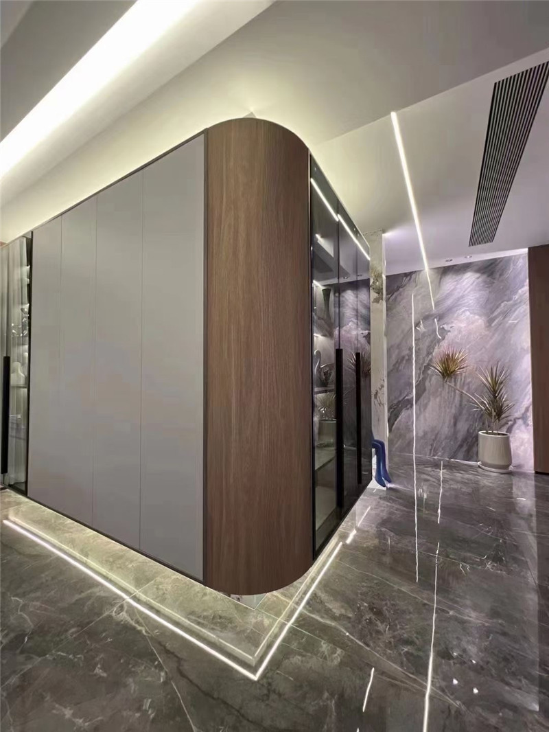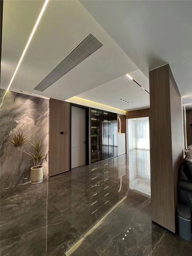 當(dāng)ins和小紅書被美拉德風(fēng)占據(jù)的時候,這股風(fēng)也刮進(jìn)了實(shí)景裝修。復(fù)古的栗棕色包裹而過,與灰色墻面完美融合,流暢的圓弧造型、超強(qiáng)收納功能,能讓家人和客人優(yōu)雅地入戶。