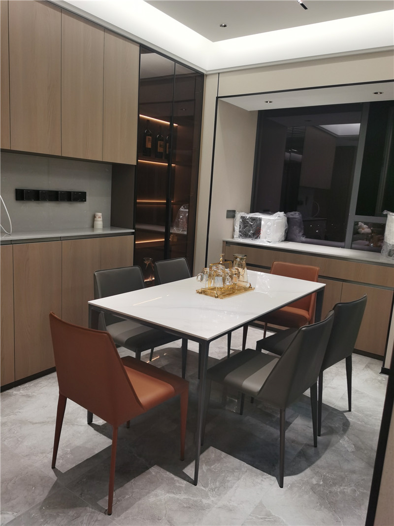 奢配餐廳定制柜,細(xì)膩淳厚,帶有冬天的暖意,輔以方桌陳列,秩序井然的線條,更顯得靜謐而小資。