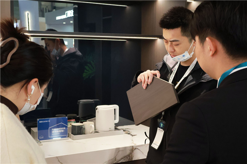 作為本次酒店展上的優(yōu)質服務品牌,海創(chuàng)以其優(yōu)質的產品呈現(xiàn)、合理的空間設計,讓客戶能在現(xiàn)場直觀感受到免漆頂墻門柜帶來的整體魅力。而海創(chuàng)多年積累的工程裝修經驗也為客戶所驚嘆,不少客戶對與海創(chuàng)的后續(xù)合作期待滿滿。