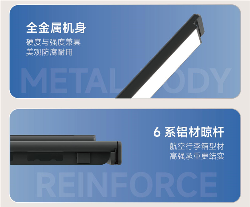 這款智能電動晾衣架宛如一位貼心的生活助手,它擁有極致超薄的設計,不占空間卻功能強大。獨特的G型夾專為母嬰家庭設計,適合小物件晾曬,也不會遺失物品。晾被晾衣兩用,為您提供便捷的晾曬體驗。