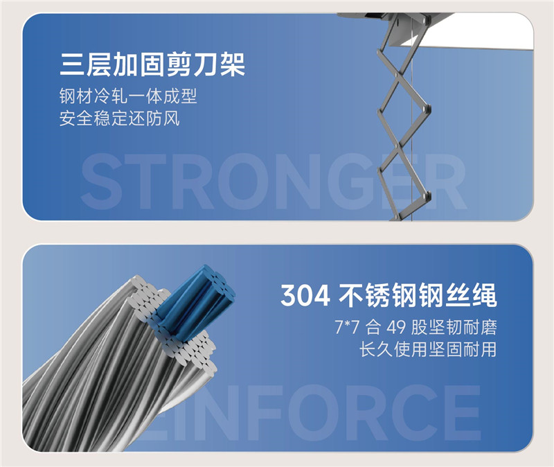 上升/下降過程遇障礙物,晾衣架自動停止運行,安全保護。