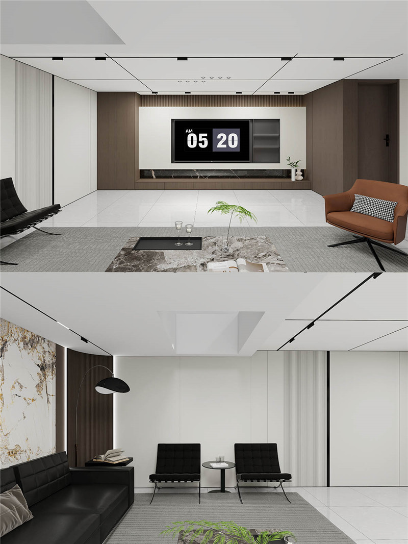 沙發(fā)背景墻采用柔美圓弧轉(zhuǎn)角,弱化結(jié)構(gòu)棱角,意式優(yōu)雅悄然流露。